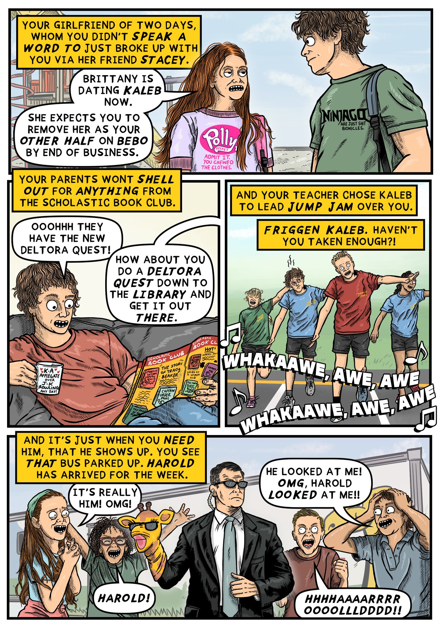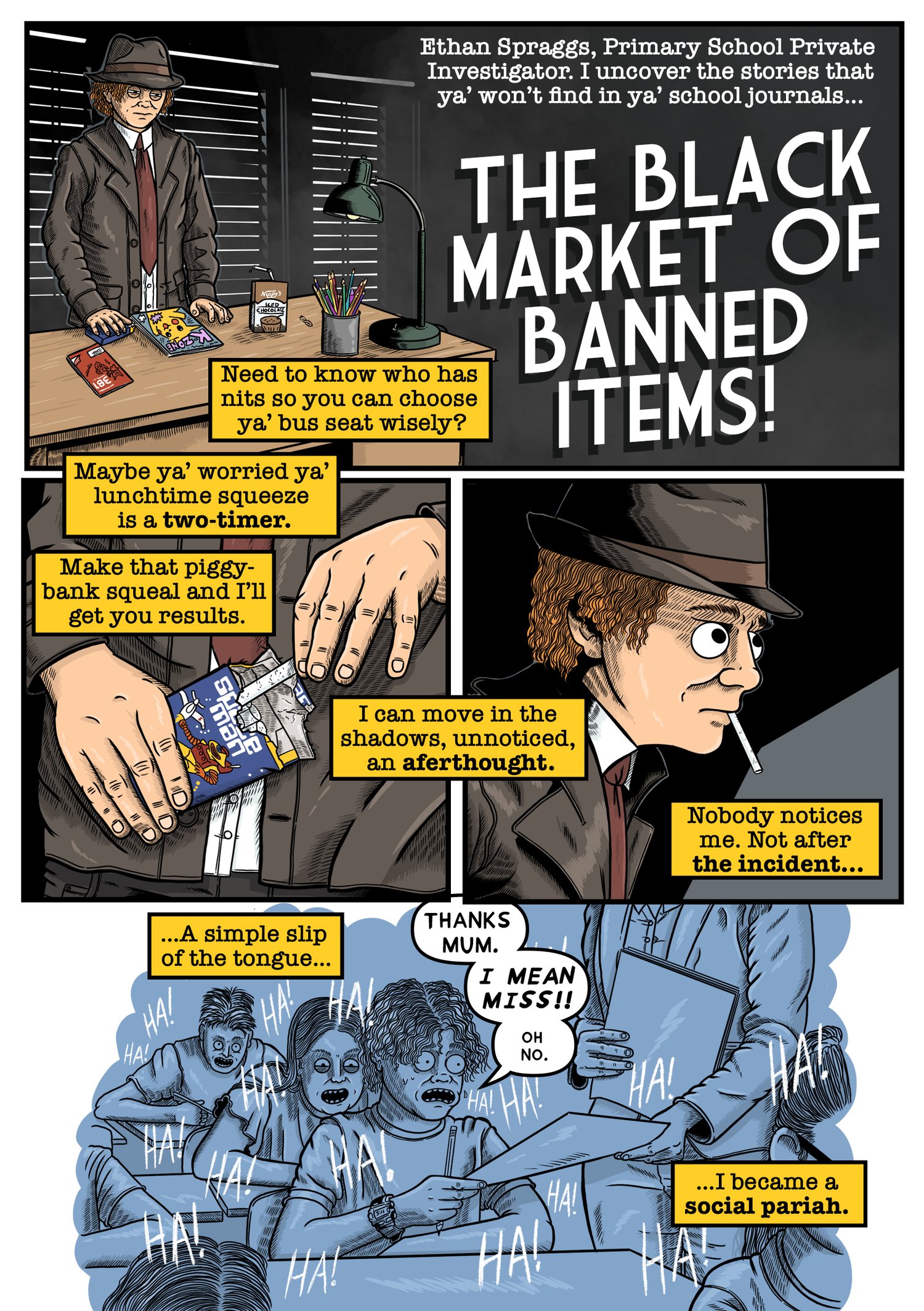 Packed into 40 pages are stories about learning empathy from a giraffe in a van, hyper-fictionalised dream Hollywood adaptations of local heroes, a primary school detective noir story that dives into the underbelly of banned items, and so, so much more!